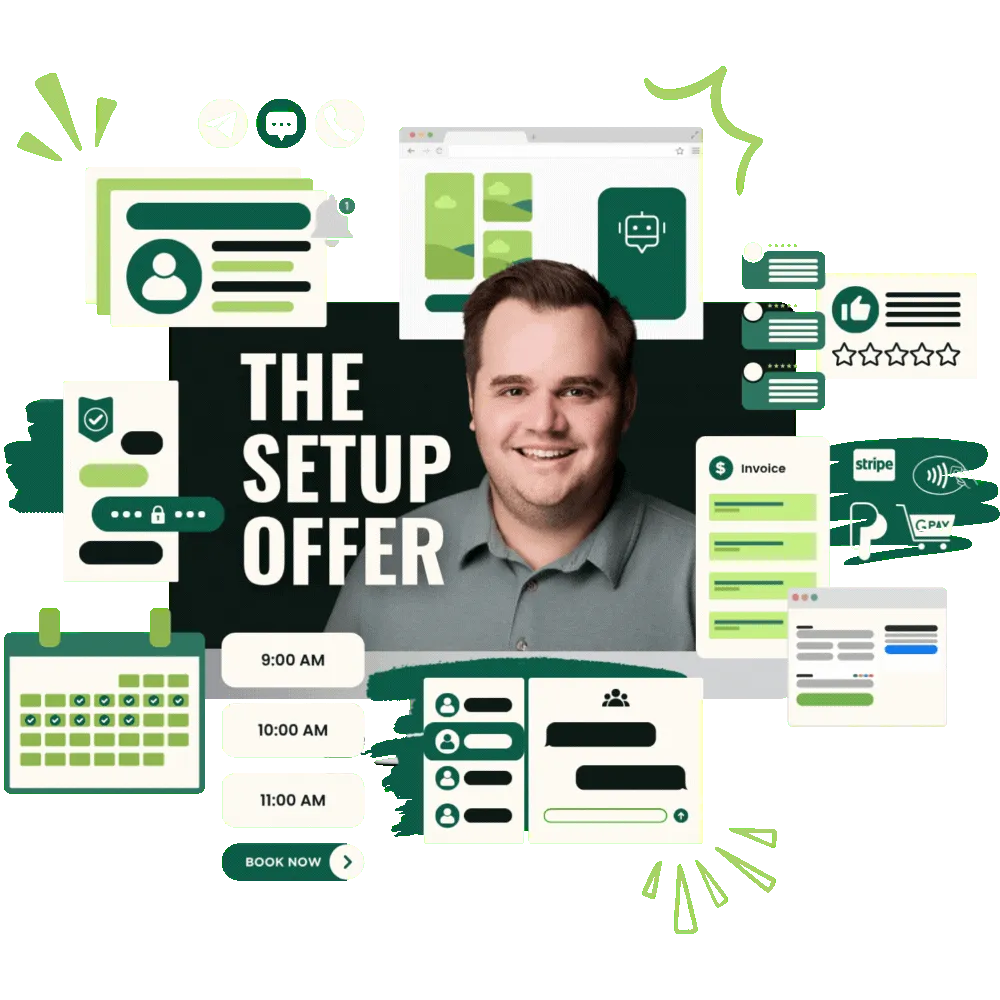 The Setup Offer is a Done-For-You implementation of the leading CRM & Automation tool that Kyle uses to run his business. It has an ongoing cost of $97 per month plus additional fees if you use some advanced marketing connections. Connections like WhatsApp (for international customers), Facebook or Google Ads (for advertising), and LC Phone (for SMS & Voice automation) have marginal usage fees based on how much you use them. The idea is that your marketing should deliver a return on investment, so if you choose to spend $50 on ads and make $1k in new jobs, you're happy to spend even more potentially. None of these additional fees are mandatory, but they are typical of a robust marketing system. Additional AI and marketing tools are available for upgrade.
